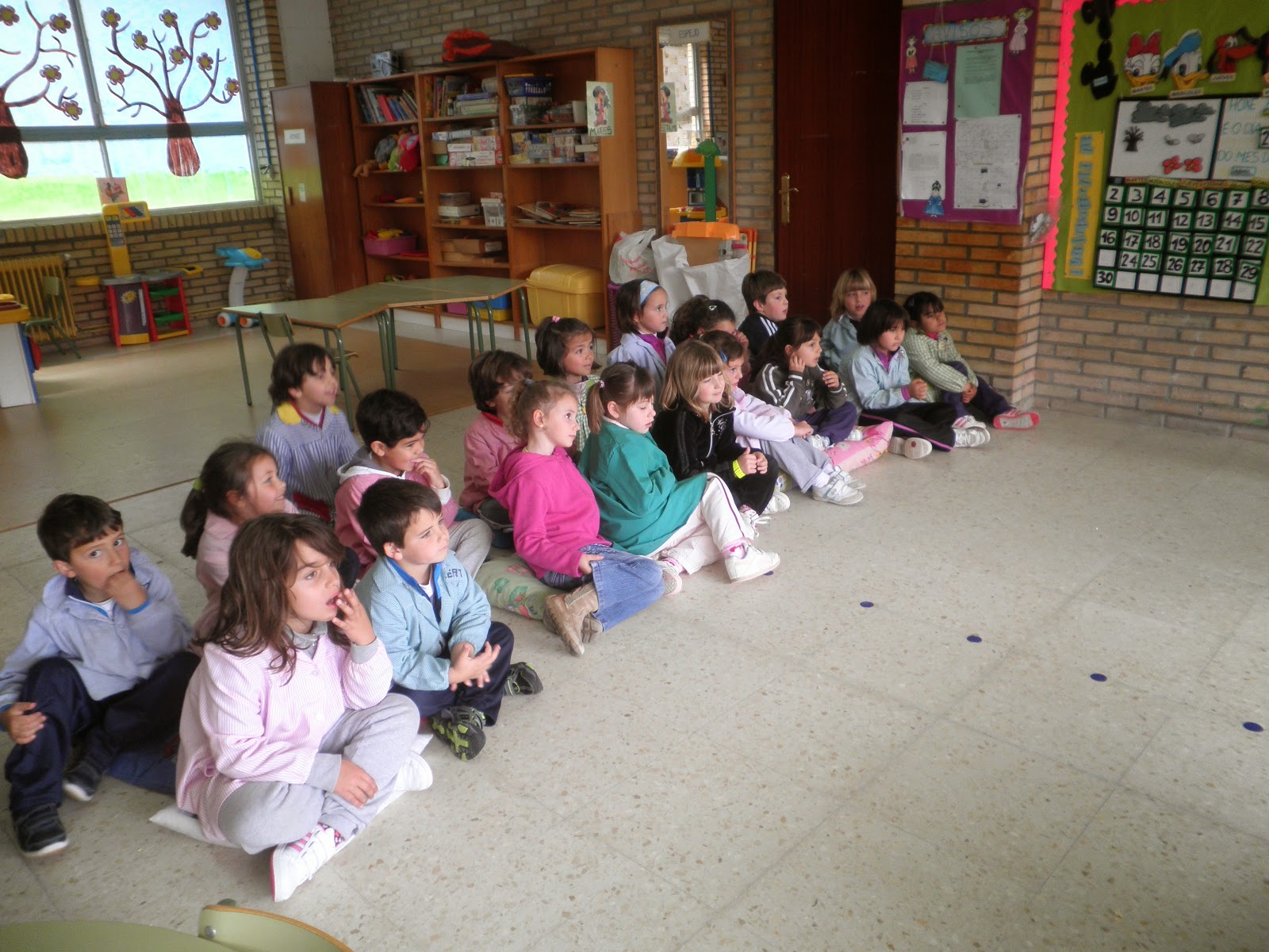 A primeira, fomos á aula de tres anos a ensinarlles algún conto cantado que aprendemos coa profe Elena, e mirade que ben o fixemos, xa valemos pa profes...