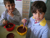 Coa volta da Semana Santa, hoxe aproveitamos para pintar uns ovos de Pascua, pero non cunha pintura calquera, non!! pintámolos con chocolate.... e non sabedes o ben que nos quedaron!!