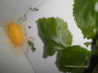 Ademais, xa temos os dous primeiros vermes no seus capullos, a sorpresa foi ao ver que un é de cor amarelo e outro branco!!