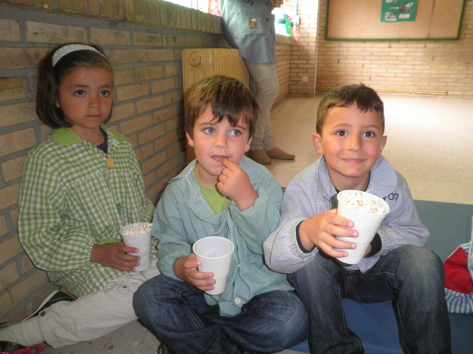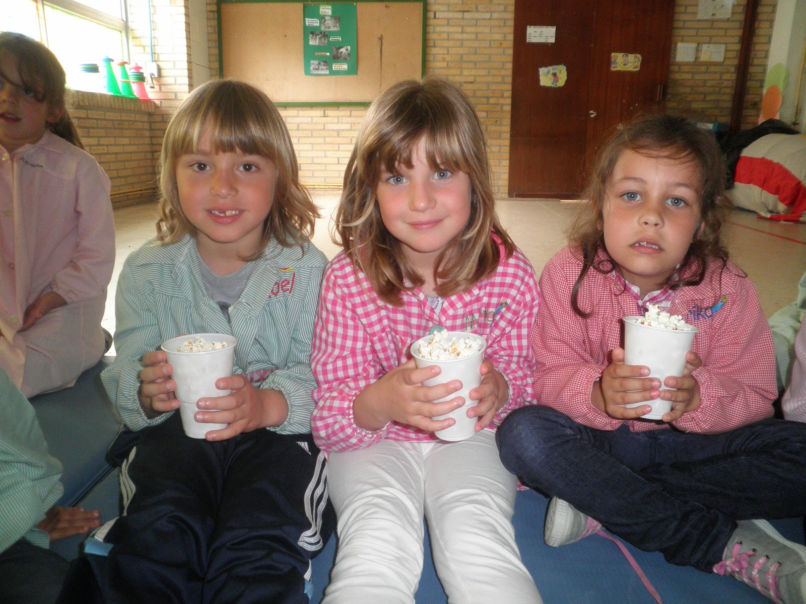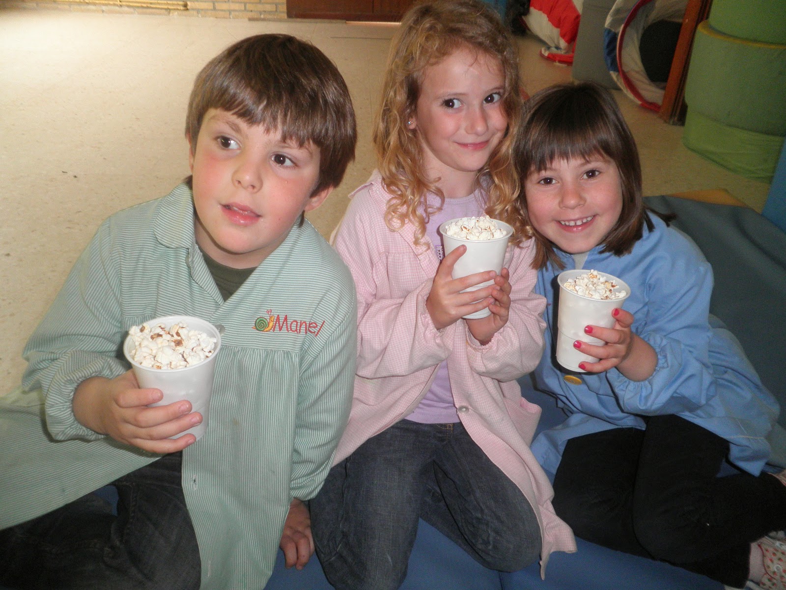 Pois si, hoxe tivemos unha pequena sesión de cine na que, por suposto, non podían faltar as palomitas!! Por iso durante toda a mañá estivemos facéndoas para que estivesen listas para ver unha peli. Mirade o ben que o pasaron...