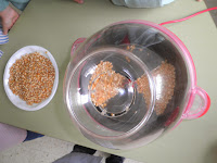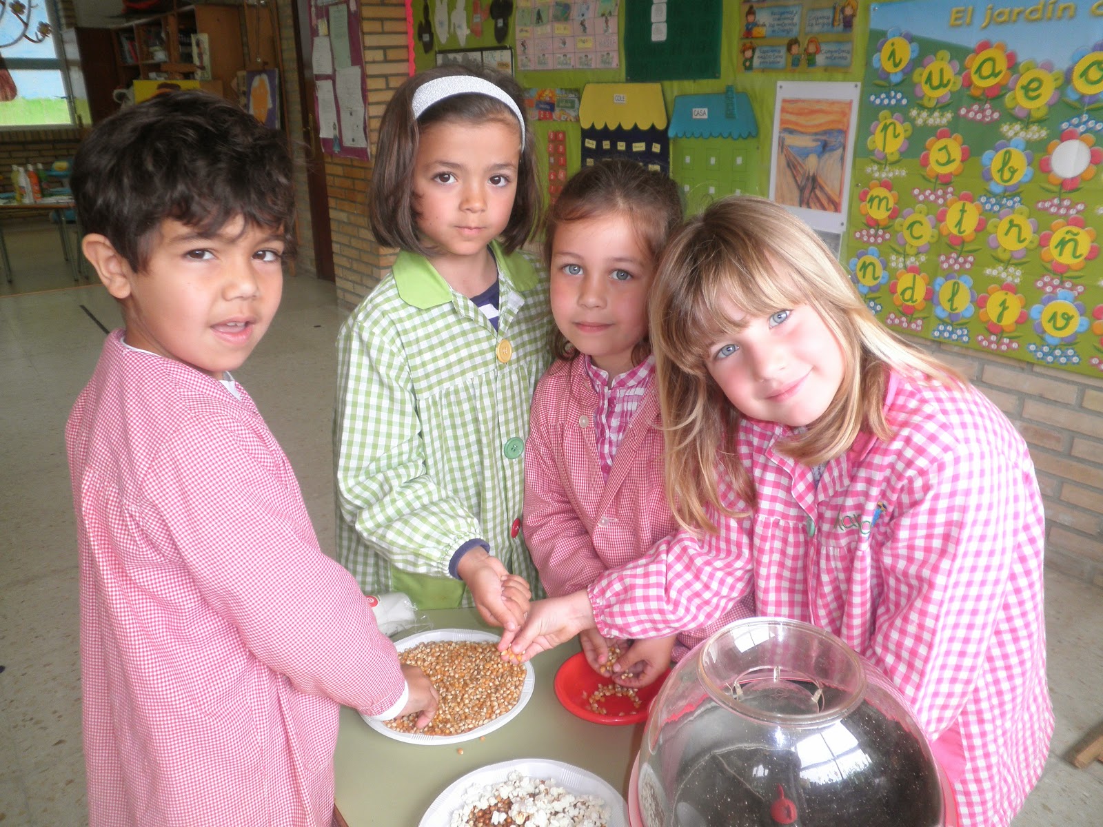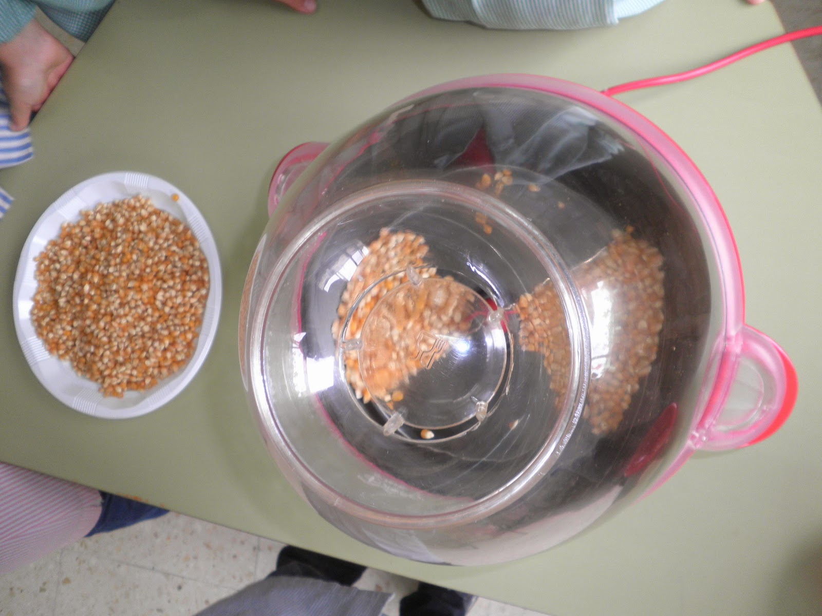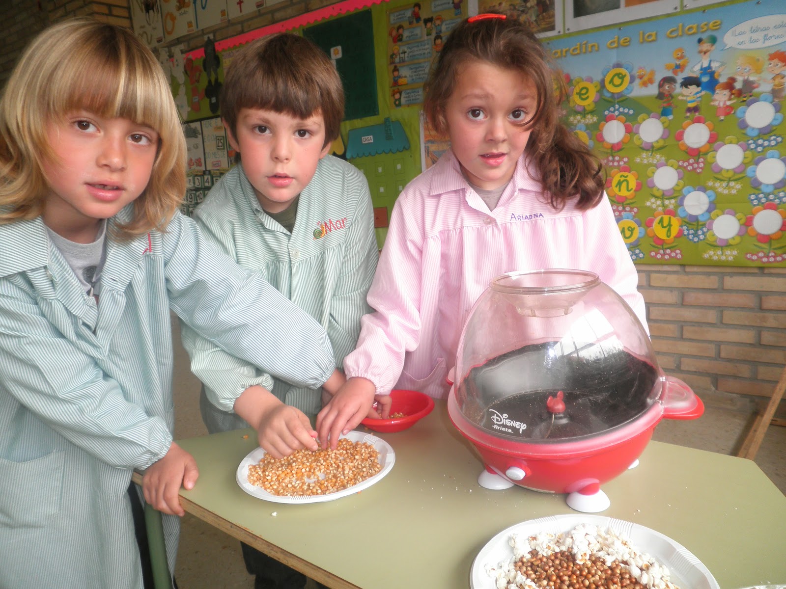 Pois si, hoxe tivemos unha pequena sesión de cine na que, por suposto, non podían faltar as palomitas!! Por iso durante toda a mañá estivemos facéndoas para que estivesen listas para ver unha peli. Mirade o ben que o pasaron...