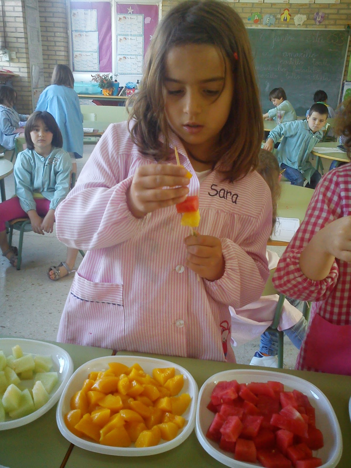 Onte preparamos unhas deliciosas brochetas de froitas, estaban boísimas, con dicirvos que non sobrou case nada...