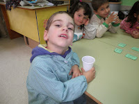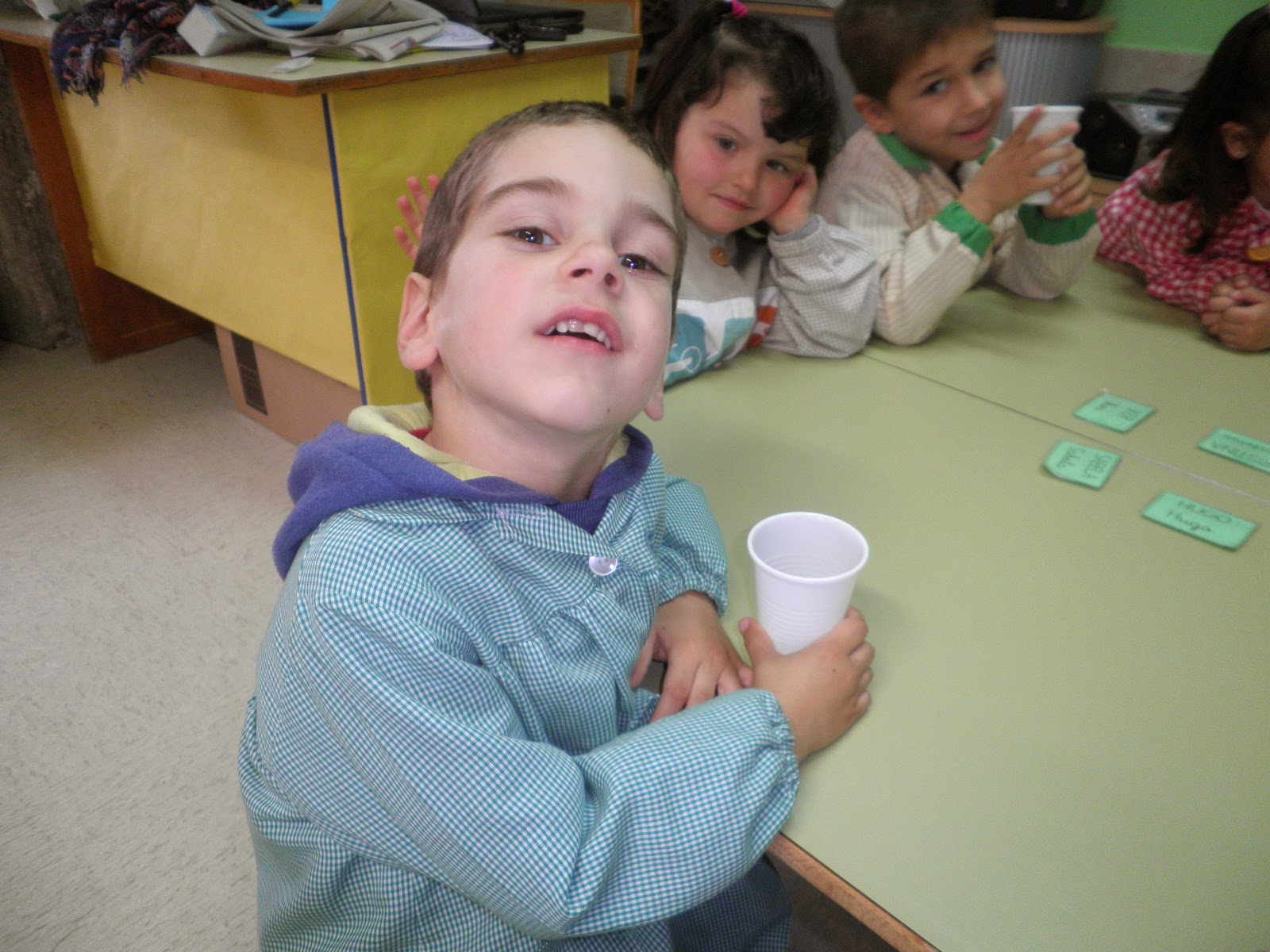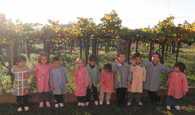 Bueno aquí vos deixo algunhas fotos de onte cando fixemos o mosto na clase, non hai moitas porque con todo o follón nin nos dou tempo... E mirade que manualidade fixemos entre todos para comezar a decorar a clase...