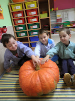 E vaia cabazas, quedaron alucinadas ao ver o grande que eran (sobre todo unha). Moitas grazas a mamá de Noa por traelas, só nos falta unha e o luns xa empezamos a baleiralas!! Se fora por eles, algúns xa comezaban hoxe...jejeje