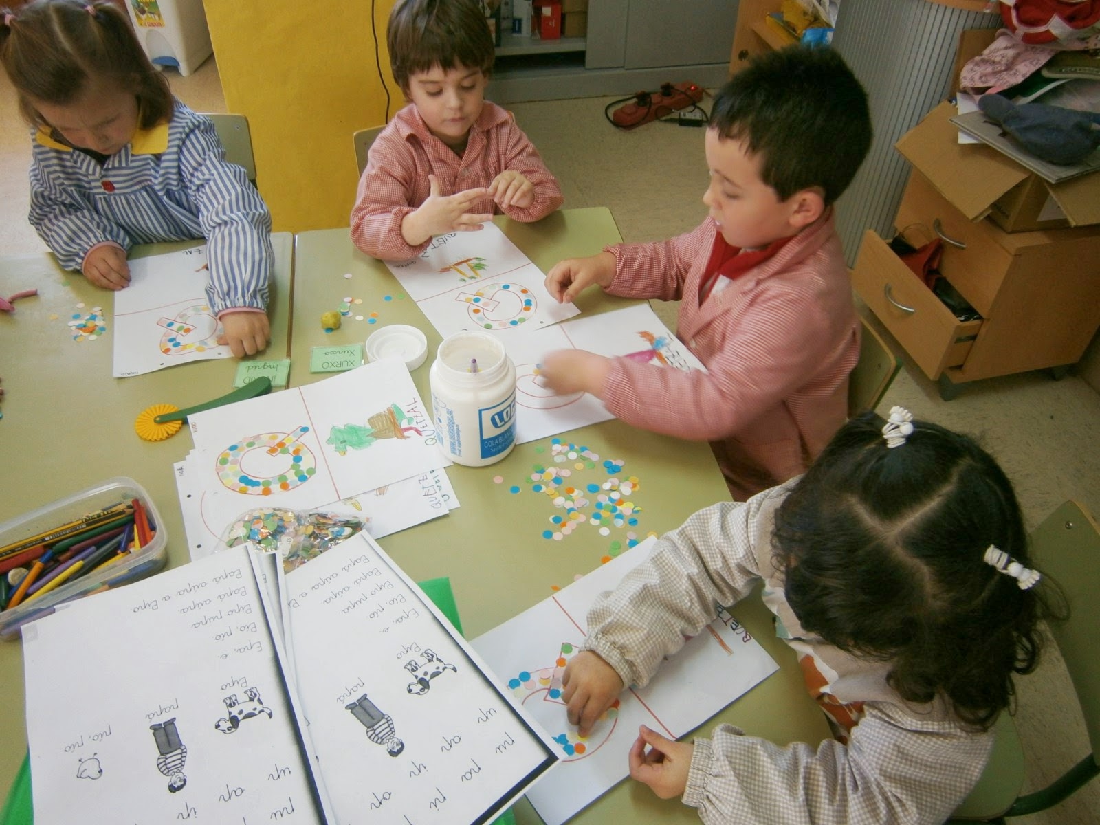 Hoxe chegaron mais cousiñas sobre as abellas, aínda que o que mais lle gustou foi a colmea que trouxo Cristina, polo que aproveitamos e comezamos a elaborar a nosa propia para ter na aula, iso si, cunhas abellas un pouco mais tranquilas!! De momento aínda non temos fotos, porque nos vai a levar uns días, xa que temos que ir facendo e esperando a que seque, pero cando xa comece a parecer o que é, vola ensinaremos! Aquí van as fotos do que chegou hoxe...