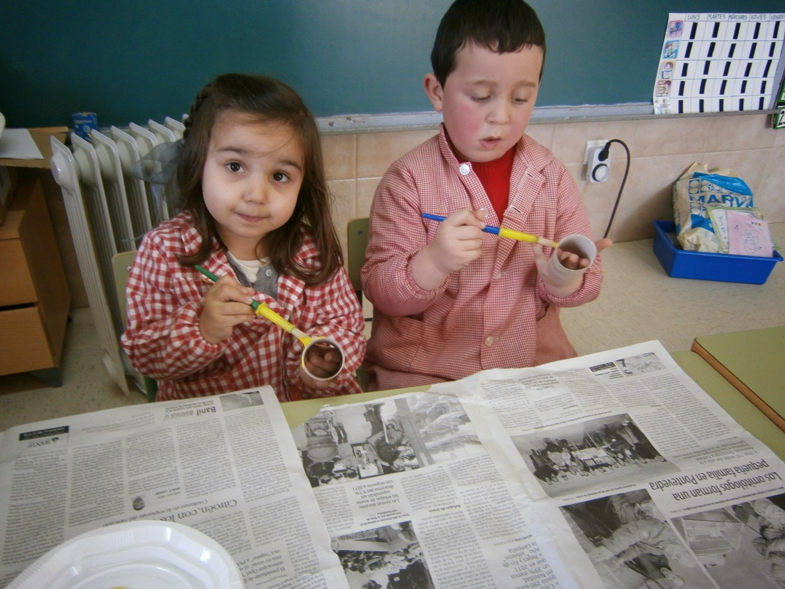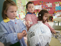 Esta semana estivemos iniciándonos no tema das abellas, gracias a todas as aportacións que nos trouxestes. Primeiro con unha adiviña e despois vendo os tipos de abella que hai, e o que fai cada unha delas. Seguimos avanzando na nosa colmena, aínda que vai para longo porque avanzamos un pouco todos os días, xa que ten que secar para poder continuar. Tamén fixemos unhas abelliñas que sobrevoarán esta semana a aula, aquí vos deixo unha fotiños para que vexades do que falamos...