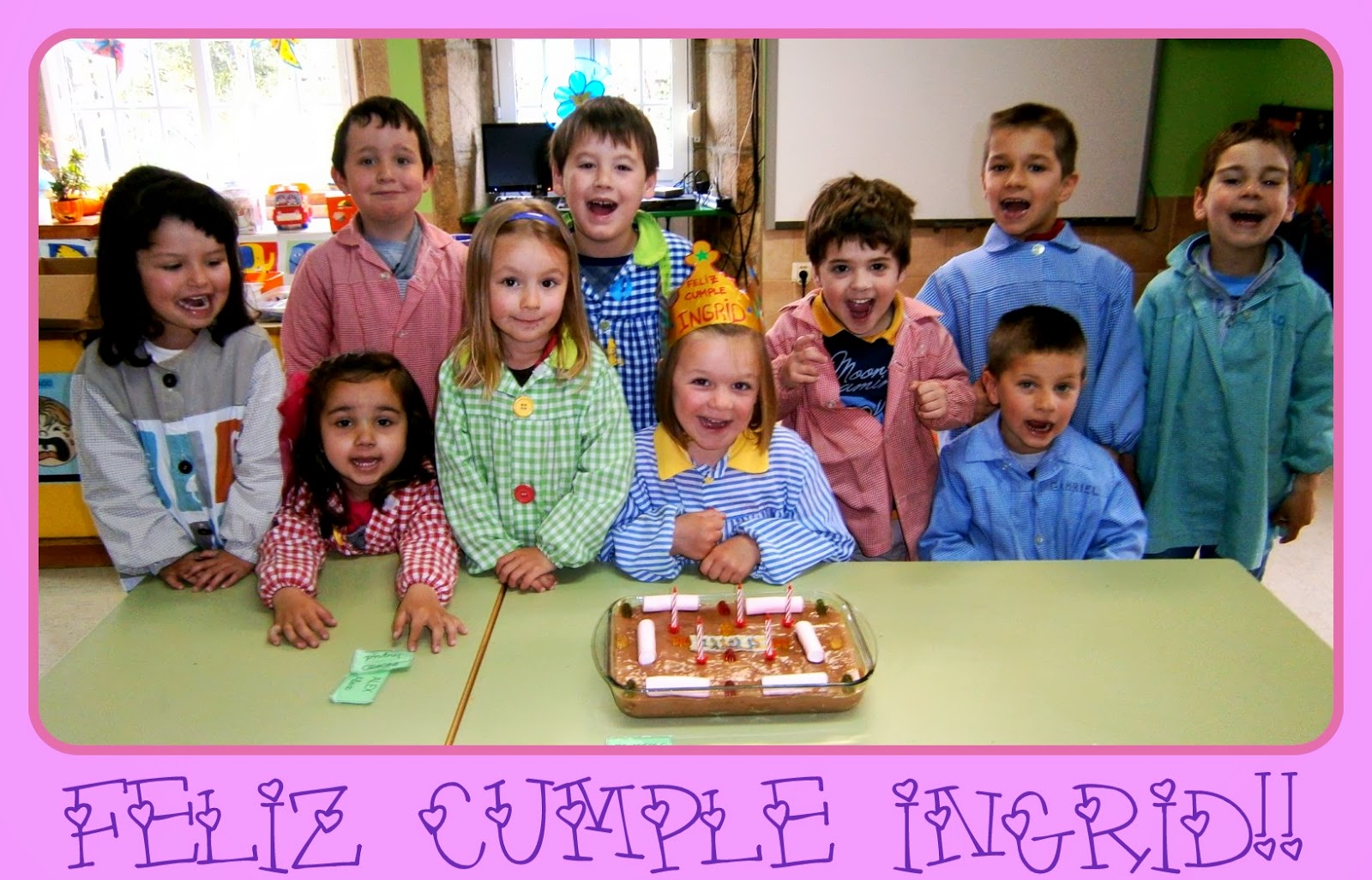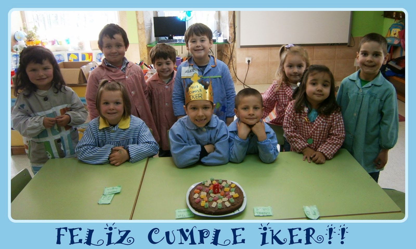 Pois hoxe celebramos no cole o cumple de Iker, que xa ten 6 anos!!! E con el rematamos a tanda de cumples deste curso, así que ata o ano que ven non volveremos a ter sesións de tarta no cole... :(