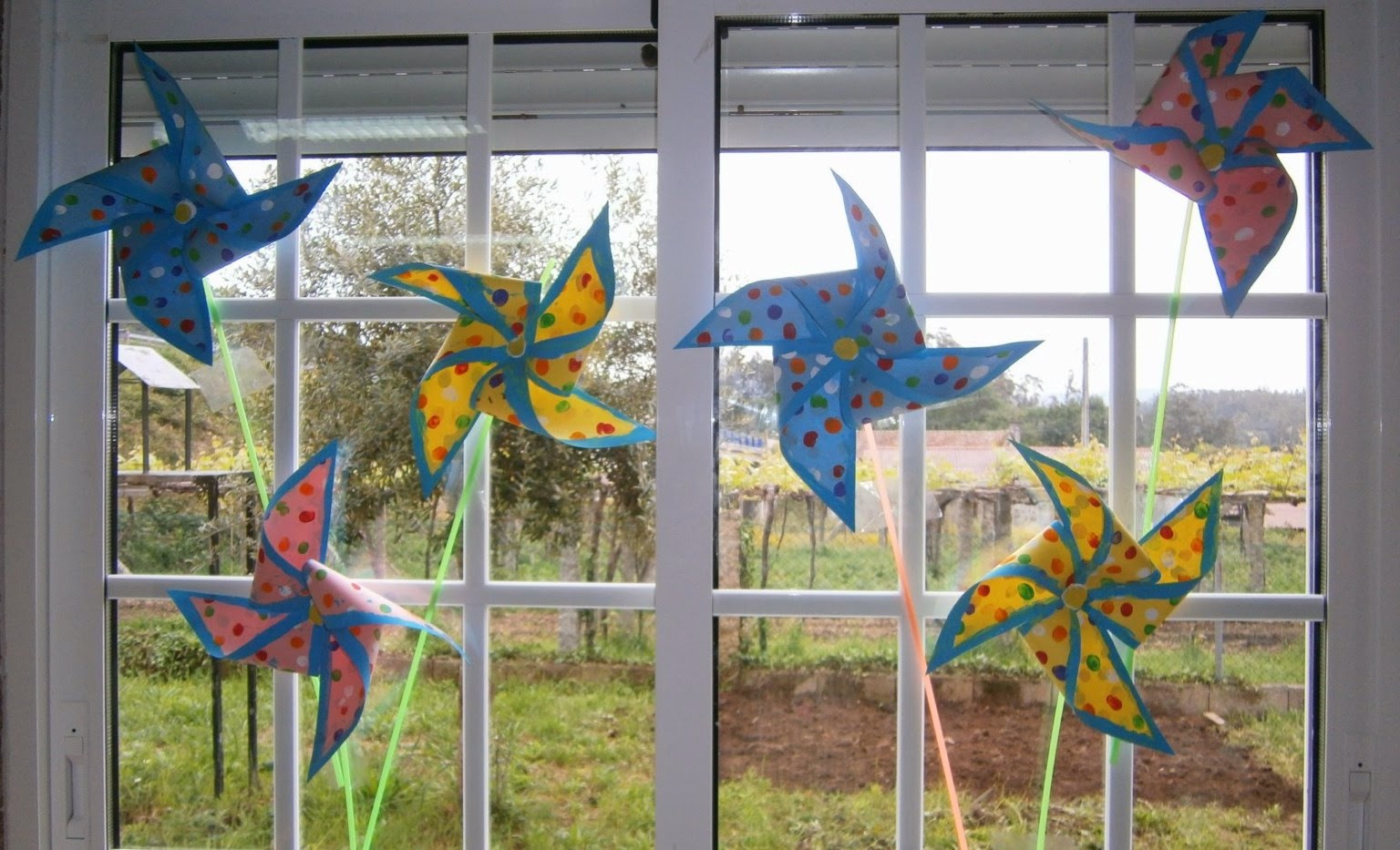 A semana pasada colgamos so nosos molinillos pola aula, que por fin están rematados!!
