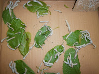 Hoxe contamos os gusanos de seda que tiñamos, posto que despois da fin de semana hai que limparlles a caixa e votarlles comida nova e temos a friolera de... 107 gusaniños!!!!! Aquí vos poño unha foto onde, aínda que pareza imposible, están todos!!