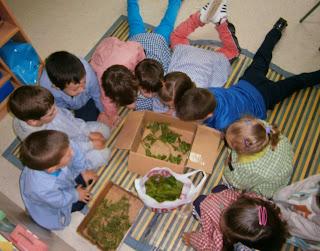 Dende o luns temos na clase uns novos compañeiros, aínda que son un pouquiño especiais... son gusaniños de seda que van a quedar na aula para que lles demos moito de comer. Cando xa estean o suficientemente grandotes decicáranse a elaborar o seu capullo no que permanecerán ata que saían convertidos en bolboreta. Algúns xa están algo crecidiños, pero outros aínda teñen que comer moitas follas de moreira!!!